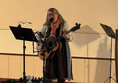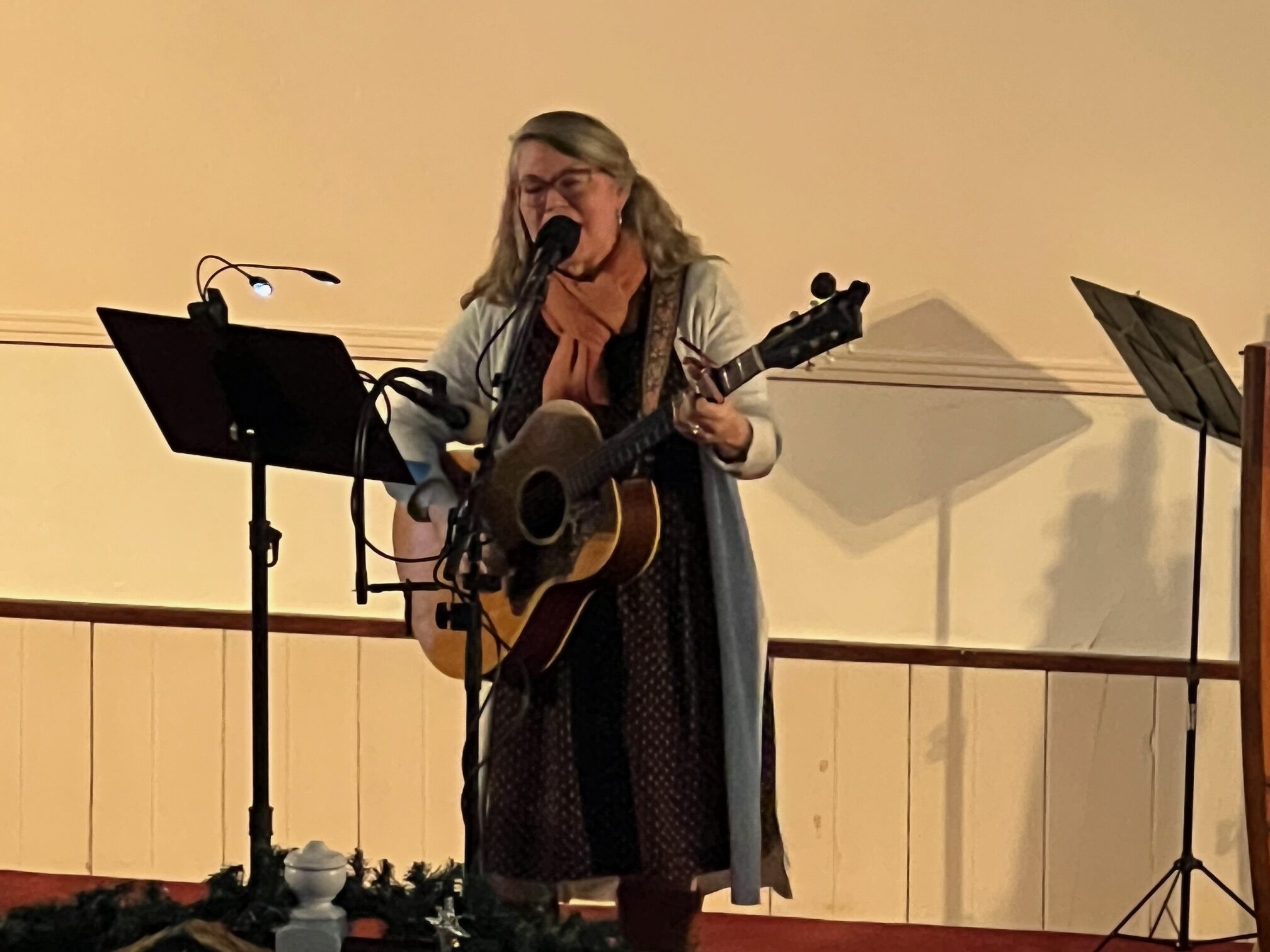 Carrie Newcomer leads a rousing chorus of “There’s room at the table for everyone”